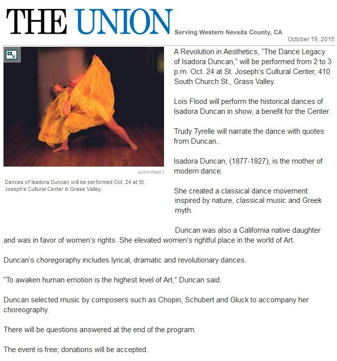Gualasa Arts to present dances inspired by Isadora Duncan
