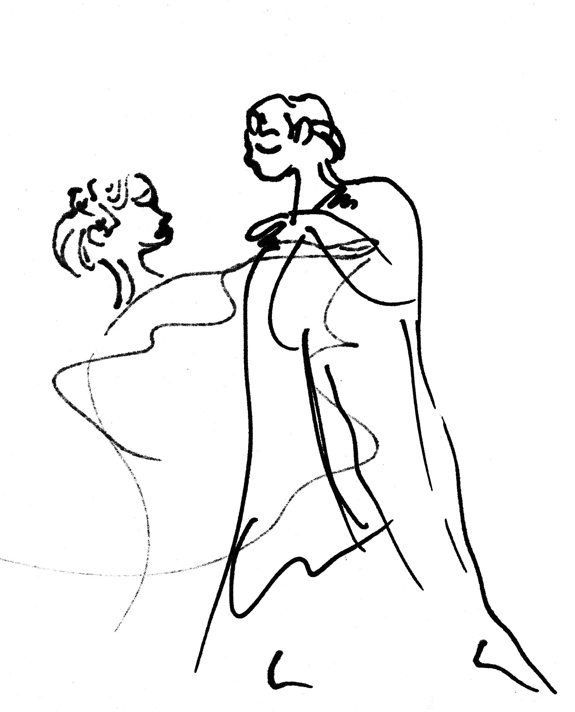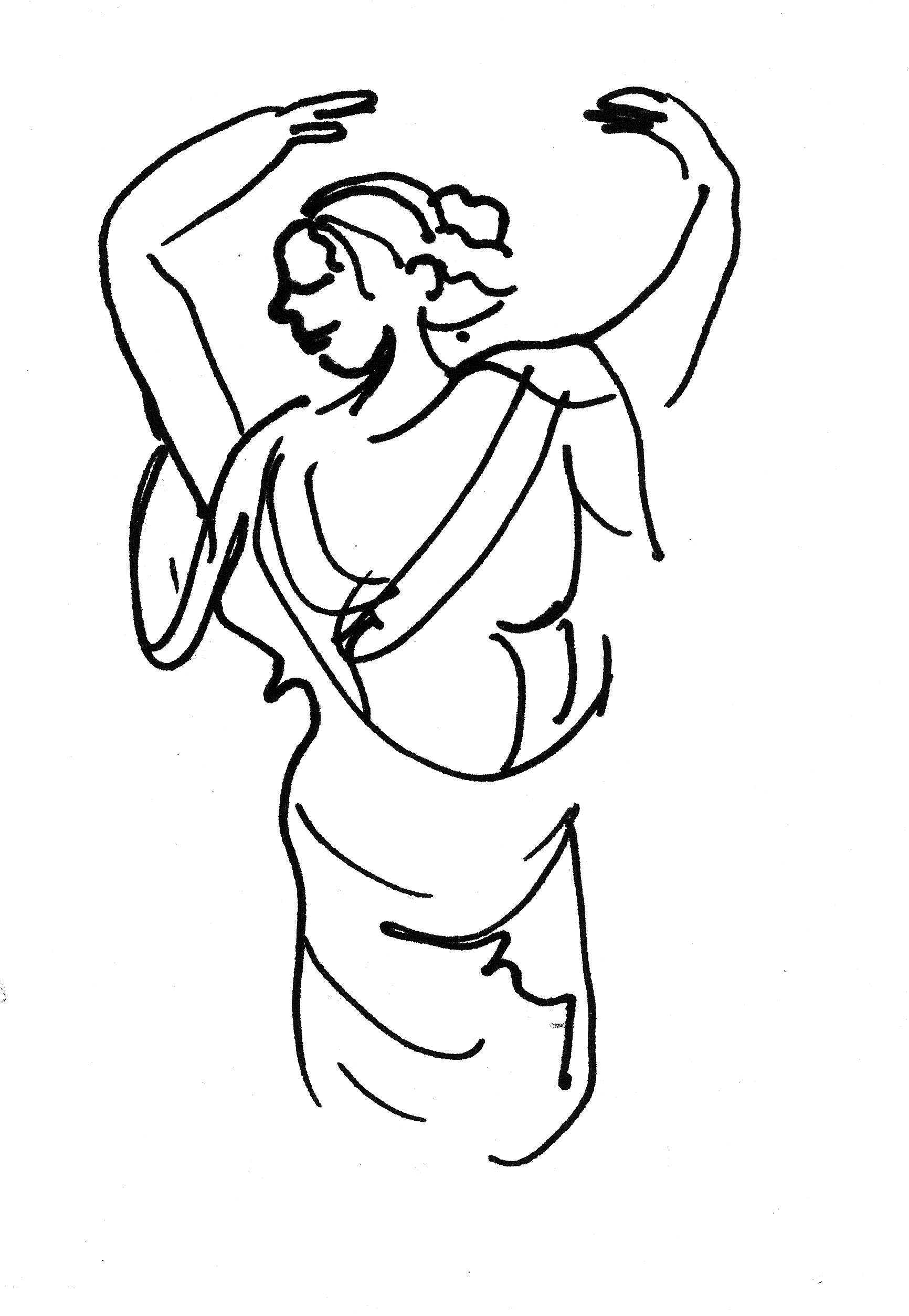The quotations accompaning the sketches are believed to be from Maria-Theresa Duncan, one of Isadora’s adopted daughters, the six nicknamed “the Isadorables”. Maria-Theresa went on to be the most famous Duncan dancer